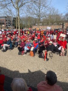 Impressie van de protestbijeenkomst bij het kantoor van de Protestantse Kerk Nederland op 20 maart in Utrecht. © Jaap Hamburger